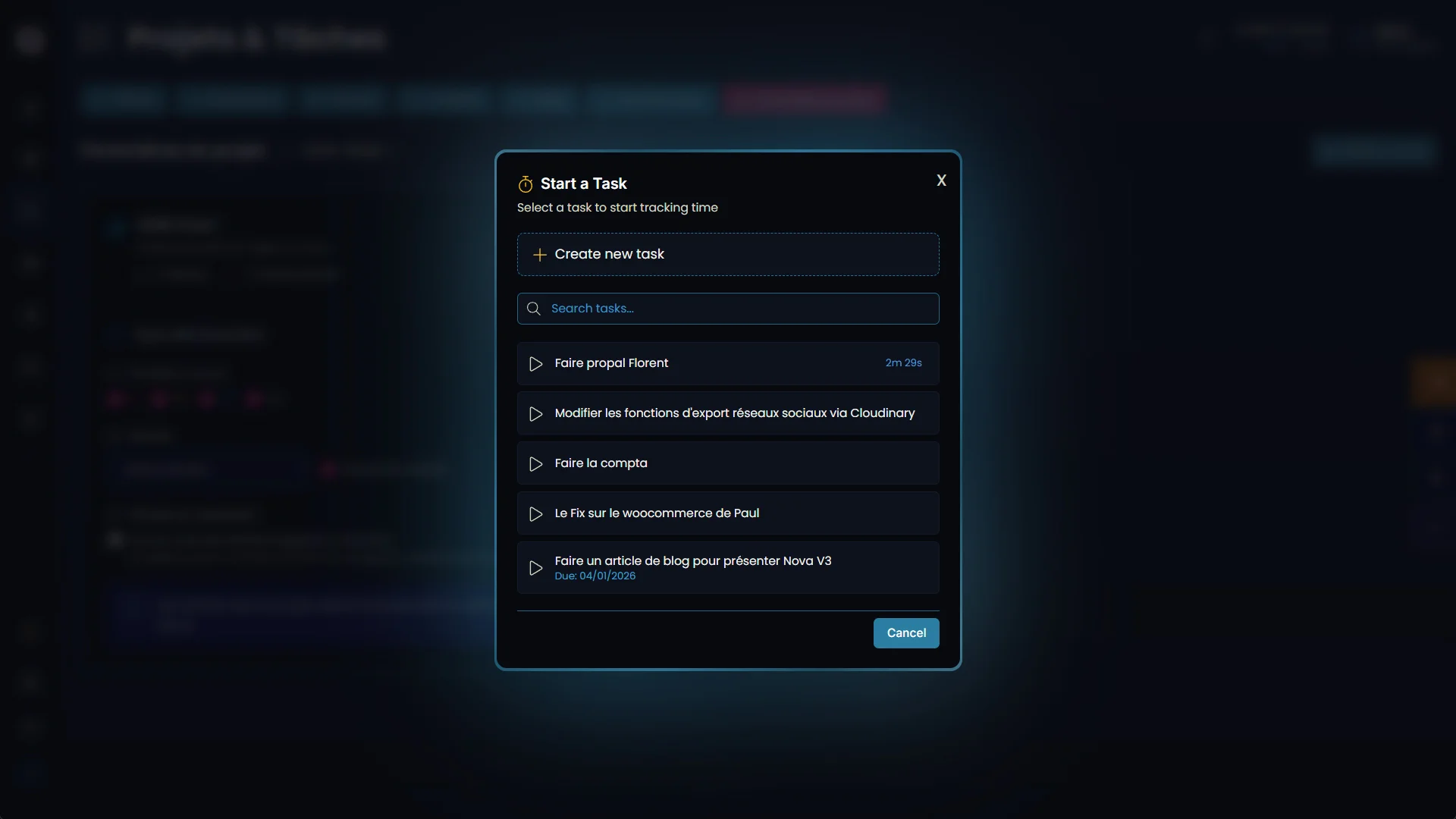 Every task and project can be timed. Start the timer when you begin, stop it when you finish - Nova Mind tracks everything automatically.