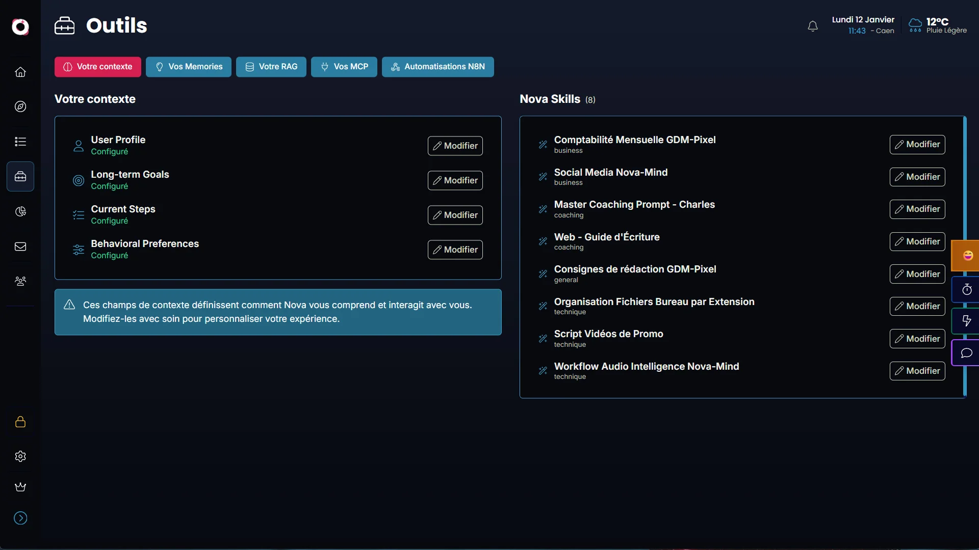 This context is progressively transmitted to Nova with each conversation: you create a real professional relationship, with an AI assistant who discovers you and adapts to your personality.