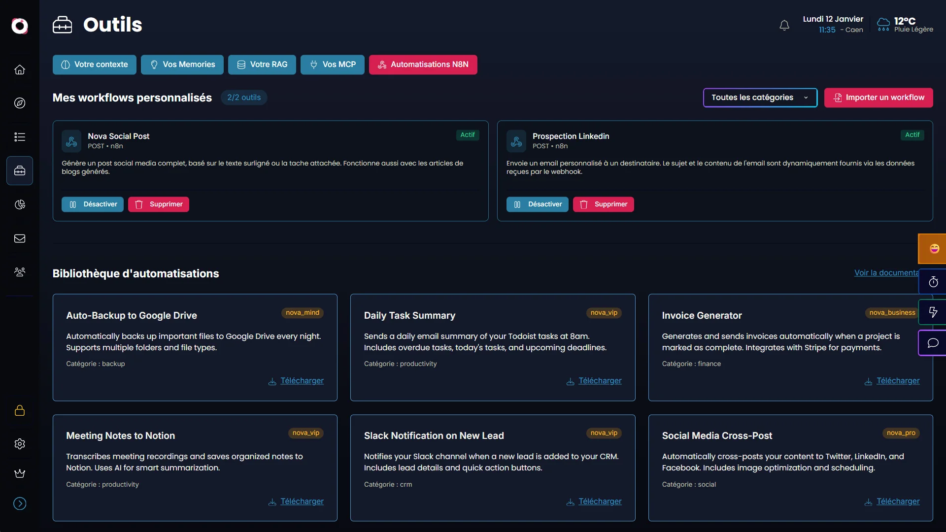 Nova accesses your notes, memorizes important info, triggers your n8n workflows, contacts your collaborators... All in natural language.