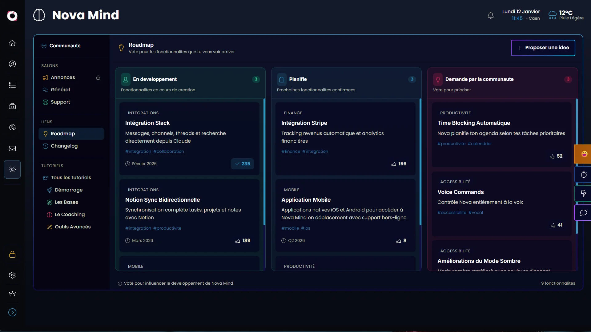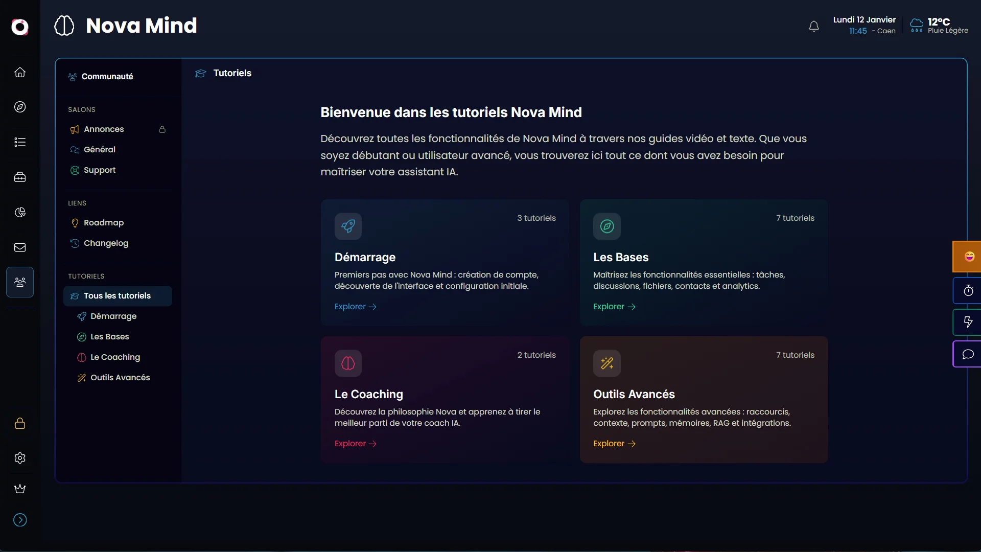 Nova Mind includes a complete community space, accessible without leaving the application. You'll find: