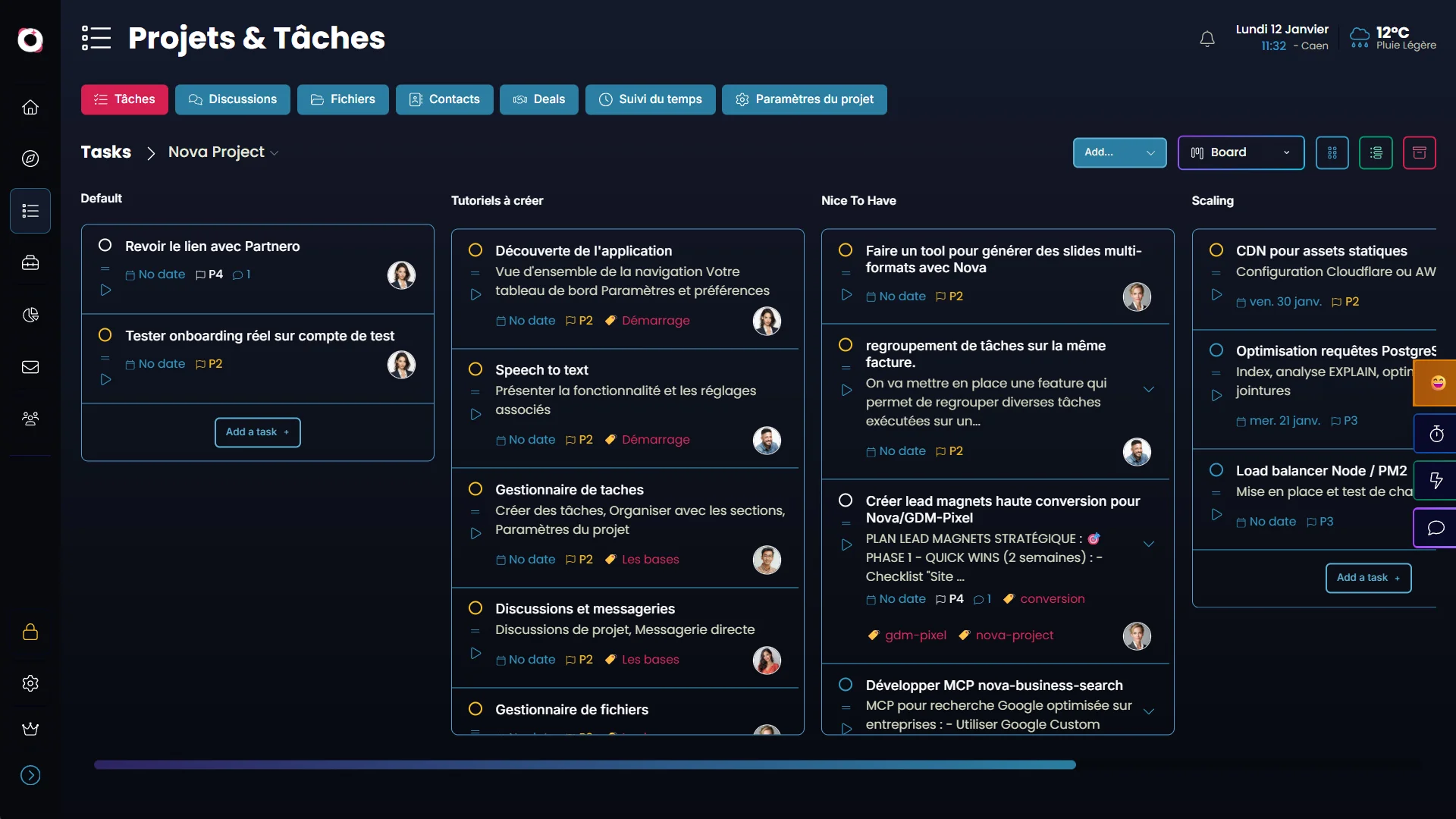 Nova Mind is an all-in-one intelligent productivity platform that combines project management, CRM, AI assistants, wellness coaching and automation in a single application.