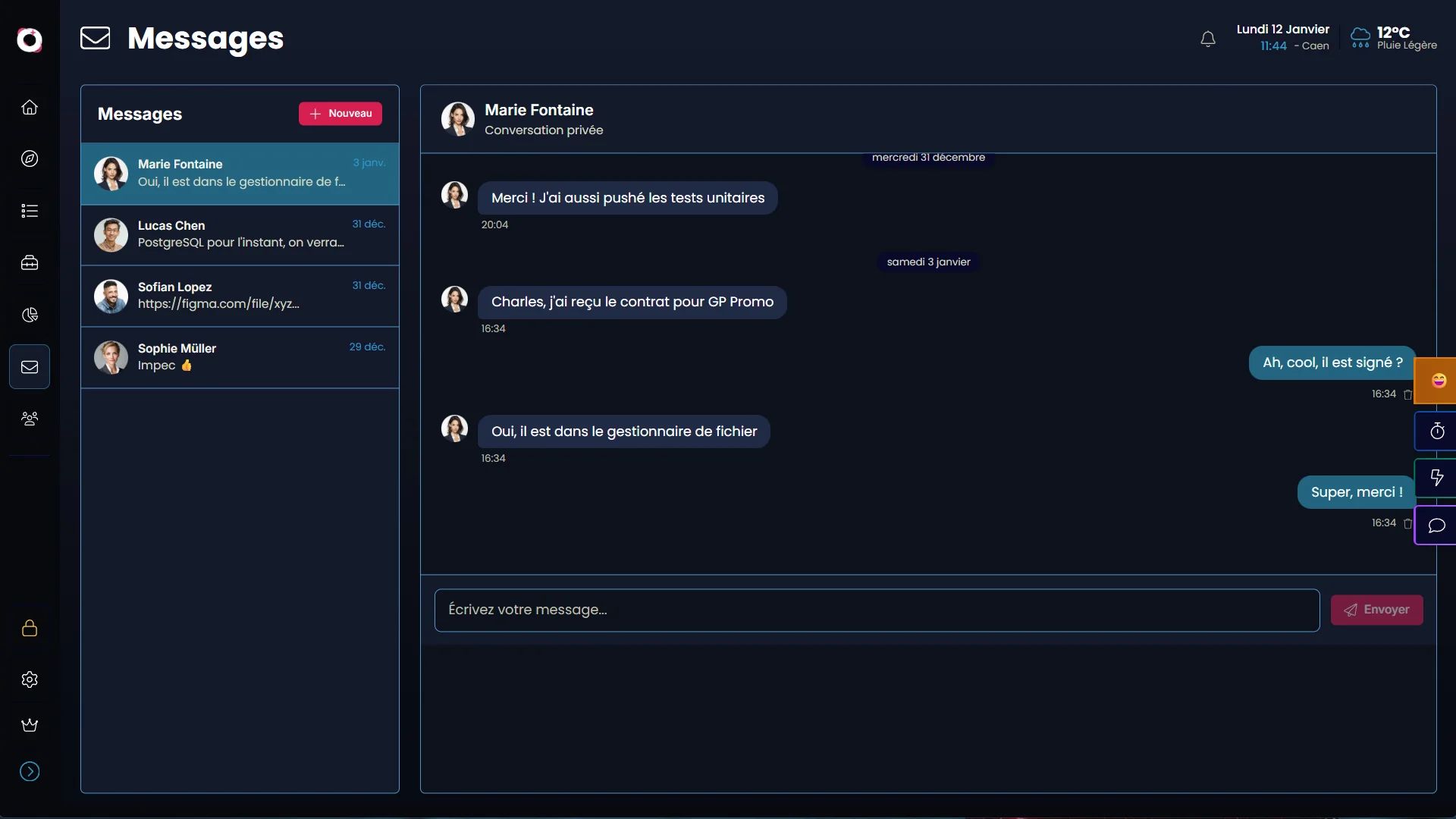 The integrated real-time messaging allows instant communication with your collaborators without leaving the application. You can even convert a message into a task with one click.