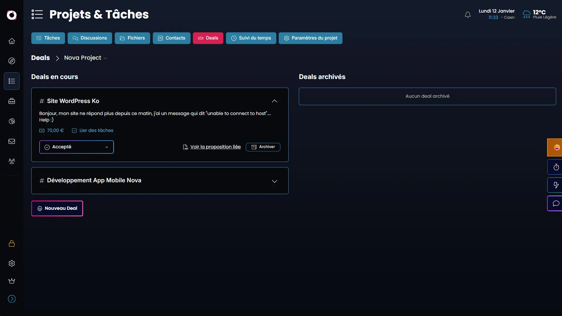 It's not a complex sales CRM, but exactly what a freelancer or small team needs to keep a clear record of their professional relationships.