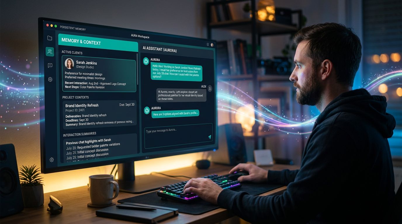 Quand un assistant IA connaît vraiment vos clients — pas parce que vous venez de lui expliquer, mais parce qu’il a stocké chaque interaction, chaque préférence, chaque contrainte projet — le workflow change en profondeur.